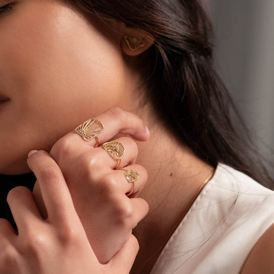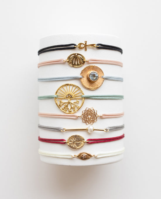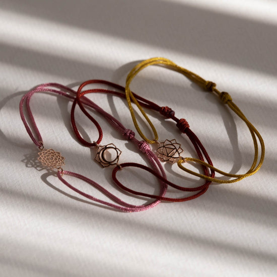 Each piece represents one of these chakras and is often adorned with a gemstone whose colour symbolizes the emotion linked to the flower.