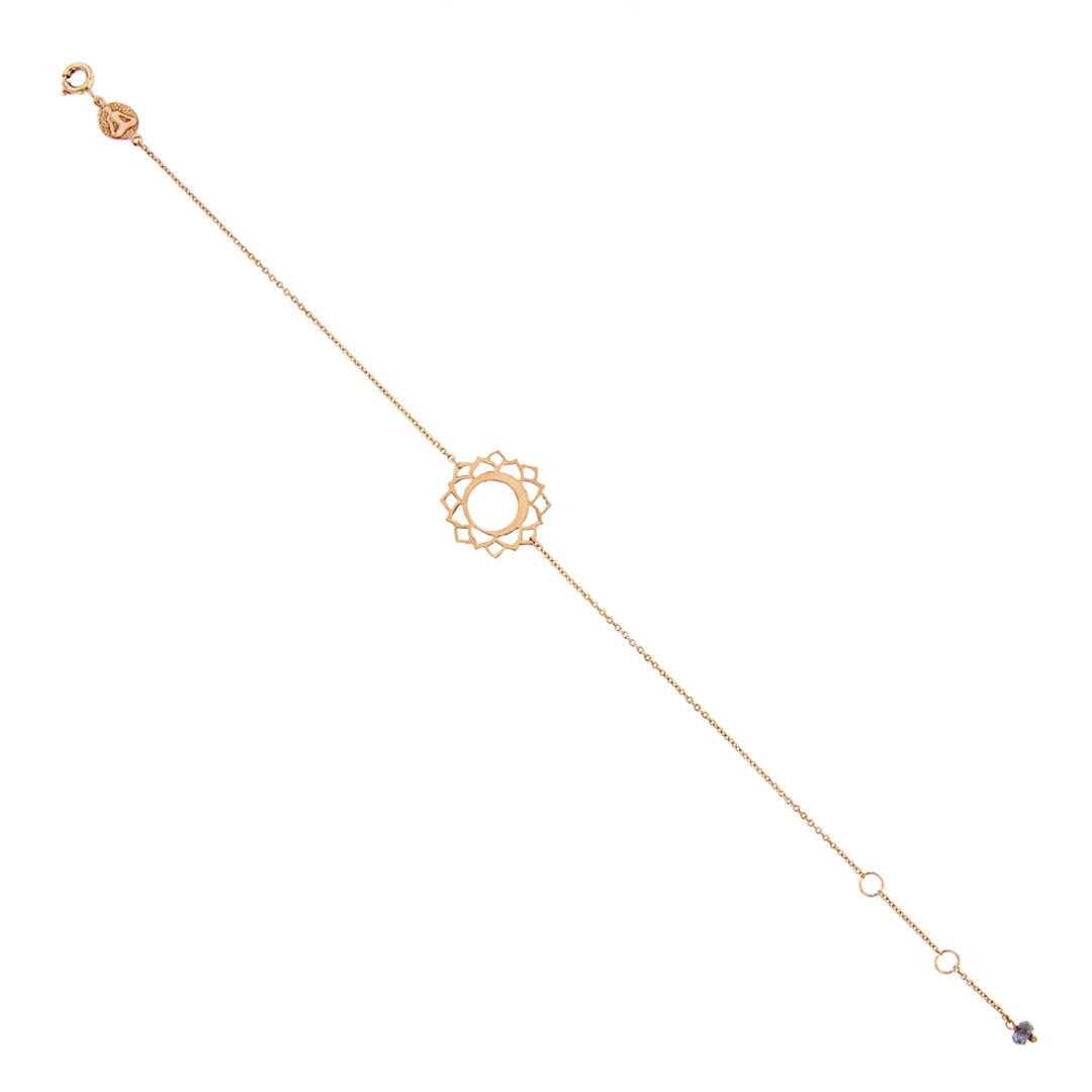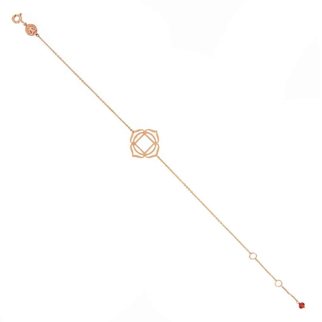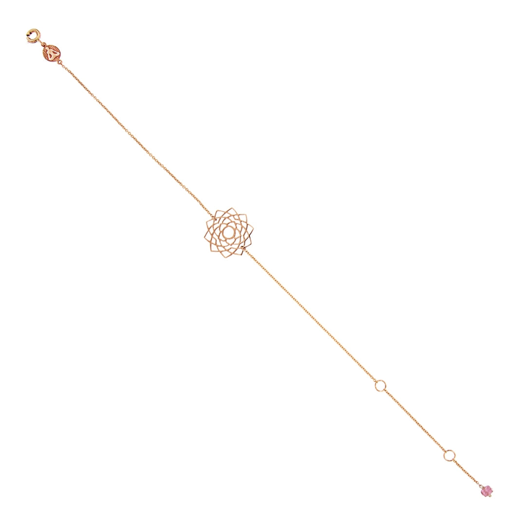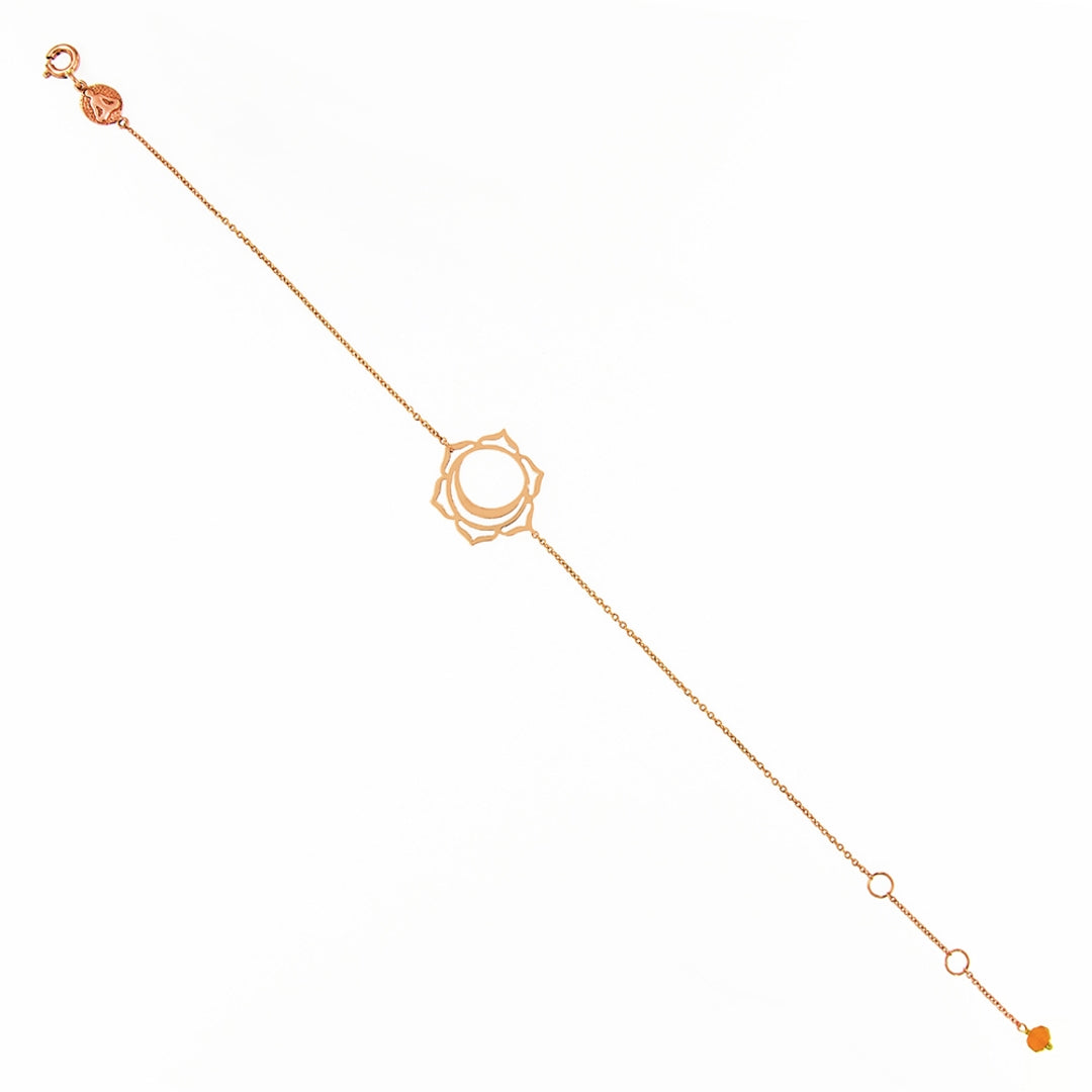 The bracelet with chakra pendant and a fine stone, whose colour symbolizes the energy linked to the chakra, and a tinyOm signature meditation symbol adorning the clasp.